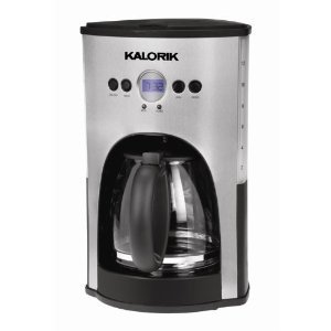 Established in Belgium, in 1930 Kalorik has become synonymous with fine engineering and unique product development. As one of Europes's first manufacturers of small electric appliances the company's initial product was one of the very first electric toasters. With this well recognized achievement and a thirst for new invention the company established offices in the U.K. Germany and Switzerland to further innovate and design new and exciting products. Today Kalorik is a second-generation industry leader. Its passion to create superior products is a guiding force in the company's commitment to new trends in product development meticulous care for detail and to maintaining cutting edge manufacturing facilities. It is this careful balance conbined with Kalorik's experience and traditional values that has led to the company's worldwide success. This gorgeous 12-cup stainless steel coffee maker has not only a programmable clock/timer but also a 2-hour shutoff system that will turn the coffee maker off in case you forgot it. In addition the sleek coffee maker offers an automatic pause 'n serve function and has a nonstick keep-hot plate so that your coffee will always be fresh and warm. Features are the drip-free carafe the transparent water tank and a blue backlit display. 12-cup coffeemaker with programmable clock/timer for wake-up coffee. Push-button control panel; LCD blue-backlit display; brew-pause function. Nonstick hot plate; 2-hour automatic shut-off function for safety. Hinged water-reservoir lid; transparent water tank; 12-cup glass carafe included. Measures 9 by 8-1/2 by 14-1/2 inches; 1-year limited warranty.